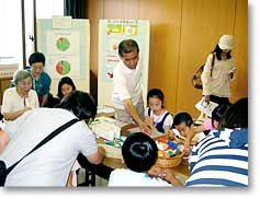 平成21年6月7日に行われた中央区の「第6回エコまつり」では、工夫された展示物であふれていました。「冷蔵庫の不思議」では、実物大の冷蔵庫を描いて、食品の配置を参加者に工夫してもらい、その結果省エネにつながります。合格者は、ペットボトルで作ったマラカスで最大限に褒め称えられ、喜んでいらっしゃいました。