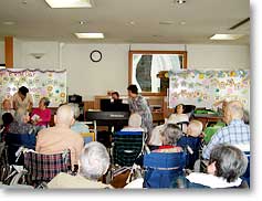 ピアノと歌を披露し、施設の中に和やかなひと時が流れていました。
