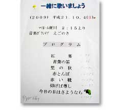 誕生日を迎えた方のご家族や職員たちがあたたかく見守る中で、ピアノ伴奏による「紅葉・青葉の笛・里の秋・赤とんぼ・赤い靴・今日の日はさようなら」を合唱しました。