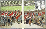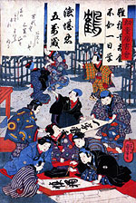 ![]() ![]() また、教養を積んだ女性には武家奉公などの道も開けるため、幼いころから女子専門の寺子屋で躾(しつけ)や作法を学ぶ子どももいました。 寺子屋は、「読み・書き・そろばん」の教育のみならず、証文作成や手紙の書き方など、生活に必要な知識を学ぶための場でもありました。 参考文献:石山秀和「寺子屋での教育」(『江戸時代館』小学館、所収) 資料提供:公文教育研究会所蔵 「幼童席書会」(歌川国芳)より ![]() ![]() 江戸期には幕府直轄の東海道・中山道(中仙道)・日光街道・奥州街道・甲州街道という五街道およびその付属の街道と、各藩の大名に統治がゆだねられていた脇街道がありました。中でも東海道は江戸と京都を結ぶ主街道として最も重視され、その間に五十三の宿場が置かれ、各宿場には人足100人と馬100疋を常備することになっていました。 このように、江戸時代から街道を中心とした街づくりが行われました。日本橋を起点とする五街道が原点となって、現在の道路交通網が形成されました。 参考文献:武部健一著『道のはなしT』(1992、技報堂出版) ![]() ![]() 天正18(1590)年、徳川家康が江戸入りした際、以前本能寺の変で苦難に落ち入った家康を漁民達が助けたという事から、摂州国西成郡佃村(現在の大阪市淀川区佃町)の名主森孫右衛門が、漁民30名あまりを率いて江戸へ移住しました。幕府から命じられて鮮魚御用人となり、鮮魚を幕府の膳所台所に供し、残った魚を本船町で一般に販売したことに日本橋魚河岸の起源があるといわれています。 近代になり、日本橋が東京の中心地として栄えるとともに、魚の鉄道輸送の発達と河岸の狭さから、移転問題が起こりました。そして、大正12(1923)年の関東大震災で魚河岸が焼失したのを機に築地へと移転しました。 現在の築地市場も非常に盛況で、活気にあふれています。しかしながら手狭なことから、東京都は平成24(2012)年までに、築地市場の豊洲移転を構想しています。 参考文献:『東京都の地名』(日本歴史地名体系13、平凡社) 日本橋魚市 長谷川雪旦作『江戸名所図会』(国立国会図書館所蔵) ![]() ![]() ![]() 資源リサイクルの例では、紙の再利用が挙げられます。不要になった古紙は古紙買い、反古紙(ほごし)買い、紙くず買いなどと呼ばれる業者が買い集め、ほとんどが再生紙となりました。江戸では吉原に近い浅草山谷(あさくささんや)付近に紙の漉き返し職人が多く、「浅草紙」と呼ばれて親しまれました。 また古紙を三、四枚重ねて張り合わせ、柿渋を塗ると渋紙ができました。湿気に強く防虫効果もあったため、日よけや敷紙、荷づくり用に多く活用されていました。 このように、江戸時代のリサイクルシステムは、消費が拡大する現代社会でも、見習うべき点が多くあります。 参考文献:大石学「リサイクルの仕組み」(『江戸時代館』小学館、所収) (上)古着売り『猿猴庵江戸循覧記』(財団法人東洋文庫所蔵) (下)紙くず買い『守貞謾稿』(国立国会図書館所蔵) 制作協力:(株)建設技術研究所 国土文化研究所 |