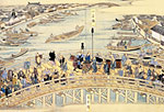 ![]() ![]() ![]() 徳川家康は、江戸の未来を「水清く入江にありて真魚(まな)豊か、四方(よも)見渡せる商いの町」になるだろうと洞察しました。そして江戸に首都を建設するための企画に三年をかけ、次々と実施していきました。中でも、幕府への高い忠誠心を持った商人集団を千人あまり移住させたことはユニークだと思います。この商人集団が江戸のまちづくりに必要な兵站(へいたん=補給)業務を分担しました。 船による物資の輸送が江戸の都市機能を支えており、大型船で江戸まで輸送された全国の産物は小舟に積み替えられて江戸の各地に運ばれました。 商人たちは、船の輸送システムを利用して全国から建設資材を運搬し、労働力を送り込みました。また、これらの人々のために住まいの確保や食料供給の「ケータリング」まで行っていたといいます。 江戸商人は「口約束を必ず実行する」という信用が大切でした。この信用が「幕府御用達」商人の起源となったと言われています。豊かな経験や才覚、人間を互角に見るセンスを持った商人こそが、江戸のまちづくりのために采配を振るえることを家康は見抜いていたのです。 ![]() ![]() 百万人の大人口を擁する都市・江戸が出現すると幕府は、町衆が自治権を持って町を運営することを認めました。多くの人々が密集して暮らす都市では、互いに気持ちよく生活するために知恵を絞り、相手を尊重し合いました。そのためのルールをつくり、それを実践するために「躾」も行いました。それが「江戸思草」となっていったのです。 江戸思草を実際に学びあう場が、町衆の組織した「講」でした。町衆はその時々の課題を解決するために集まって話し合い、必要があれば講師を招きました。新しい建物を建設するときは講中で話し合い、街の景観を重視して家の甍の色を決めたと言います。家は自分のものではなく町で生活するみんなのものだという、江戸思草の考え方が貫かれていたのです。 ![]() 資料提供:ベルリンアジア美術館所蔵 小澤弘 小林忠 共著 「『熈代勝覧』の日本橋」より ![]() 江戸思草を振る舞って暮らしていた江戸の人々は、一人一人が誇りをもち、礼儀をわきまえていました。往来は麻のぞうりを履いて静かに歩き、門口の樹木は家主の責任で手入れされていました。寺社の境内の玉砂利は丁寧に磨いてあって足袋やはだしでも歩けたと言います。家に病人がいる時にはそれとわかるように目印をつけることにより行商人も声を落として通過したり、焚き火をする時には予め近所に断りを入れるなどの慣習がありました。 自治権を持った町衆は、「自身番」制度を設けて町内の治安を維持していました。「火の用心」の夜廻りなどもその名残りです。「江戸の華」といわれた火事は頻繁に起こりましたが、同じ原因で二度と火事を発生させないのが「江戸思草」の大切な心得とされました。 また、近くに同業の店が多数あった場合でも、いつもどこか一軒は開店するようにしていました。利用客の利便性だけでなく、仕事のシェアリングによる共存共栄を図っていたのです。過当競争を避け、相互扶助による暮らしやすいコミュニティをつくる知恵が、江戸思草の基本でした。都市がハードウエアだとすれば、そのハードをより良く動かすのに欠かせないソフトウエアが江戸思草だったと言えるでしょう。 |