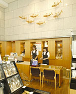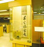 榮太樓總本舗 日本橋本店内に併設された榮太樓ミニギャラリーは、掛け軸を中心とした茶道具の展示コーナーです。茶道において菓子は切り離せないものです。毎月季節に合わせた展示内容で、訪れる人の目を楽しませてくれます。