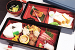 豊富な食材と繊細な技のハーモニーが美しい盛り付けの贅沢な「日本橋美人松花堂弁当」。一日10食、ランチタイムのみで要予約。伝統を守りつつイマジネーション溢れる趣向は、五感を刺激し日本橋美人の感性を磨いてくれます。