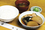 9月〜5月の木曜のランチタイムのみ、一日15食限定。前日から仕込まれた「ぶり大根」の味は、砂糖と醤油のみとは思えない豊かな風味。やわらかくなった魚の骨の食感を堪能するとともに、カルシウムも摂取。ヘルシー志向におすすめのリーズナブルな人気メニューです。
