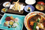 日本橋美人に贈るランチタイムのみの「日本橋美人会席」。高たんぱく低脂肪の鯛に含まれる各種ビタミン、ミネラルは、疲労回復、美肌効果が期待できます。多彩な品数、ボリューム満点の「真鯛のかぶと煮」、天ぷらを「きんぷら」と呼ぶなど、女性の心をくすぐります。
