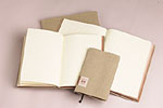 明治2(1869)年に創業の洋書販売の老舗ですが、オリジナル文具も手掛けています。品質や製本にこだわった『ダックノート』は、熟練職人の技術の結晶ともいえる手作りの逸品。ダックとは装幀に使われている帆布のこと。辞書などに使われる「本かがり」という製本方法は、型くずれが少なく背が割れないので長く使えます。