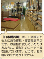 日本橋西川担当営業の中島早苗さん(左) ![]() 西川産業株式会社 東京都中央区日本橋富沢町8−8 http://www.nishikawasangyo.co.jp ![]() ![]() 日本睡眠科学研究所では、明日の美しさにつながる心地よい眠りには「枕と敷き寝具」のバランスが大切な要素のひとつと考えています。最適寝具理論に基づいて開発した、理想的な寝姿勢と体圧分布を整えてくれる「整圧敷きふとん」で、日本橋美人の皆さんを応援します。 (日本睡眠科学研究所 研究員 山田 瑞生) ![]() 海苔にはちょっとうるさい私の一押しは、山本海苔店の「日本橋美人焼きたて海苔」。