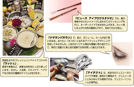 また、飲食からビューティ,ファッションまで、さまざまなお店がありますので、ご自分のお気に入りのお店,商品を見つけてください。