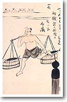 大消費地お江戸、その台所である魚河岸にはさまざまな“初物”が入荷して来ます。でも当時は“はしりもの”といって町人の慎むべき贅沢とされ、幕府は何度も禁止令を出します。そもそも魚河岸で扱う魚は御城へ献上したその余りを市中に売るというのが建前でしたから、お上はじめ武家のお歴々の口に入ってからしばらくたって庶民へという流れでなければなりません。ところが元禄時代以降、町人が財力をつけてくると、口も奢り、銭に糸目をつけないでものを食べるという風潮が生まれてまいります。また、封建社会のなかで武士に対する反骨という意味もあったのでしょう、神もお上もあるもんか、食いてえもんは食いてえや!